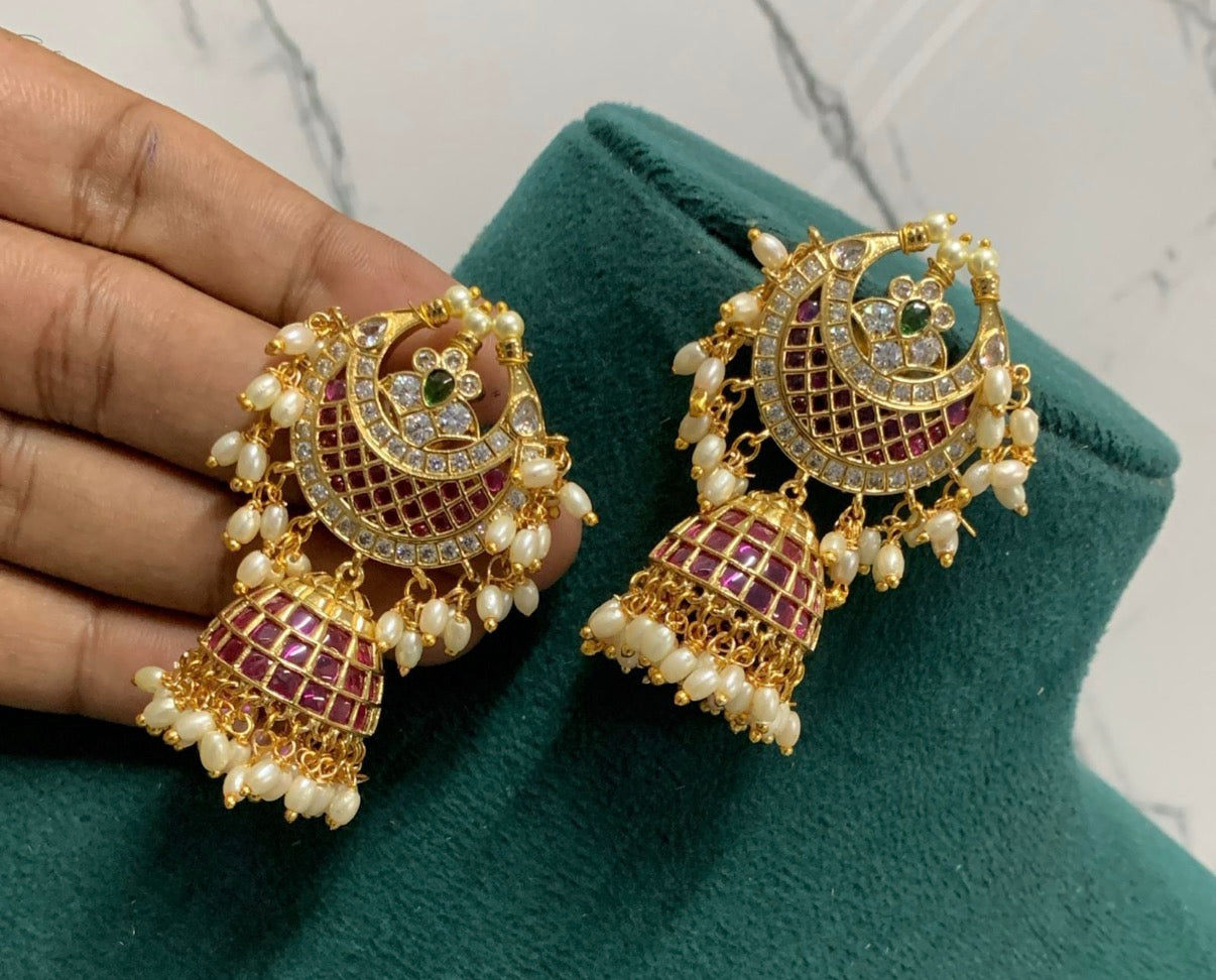 Real kemp Rice Pearls Half Moon Bridal Grand Jumkha