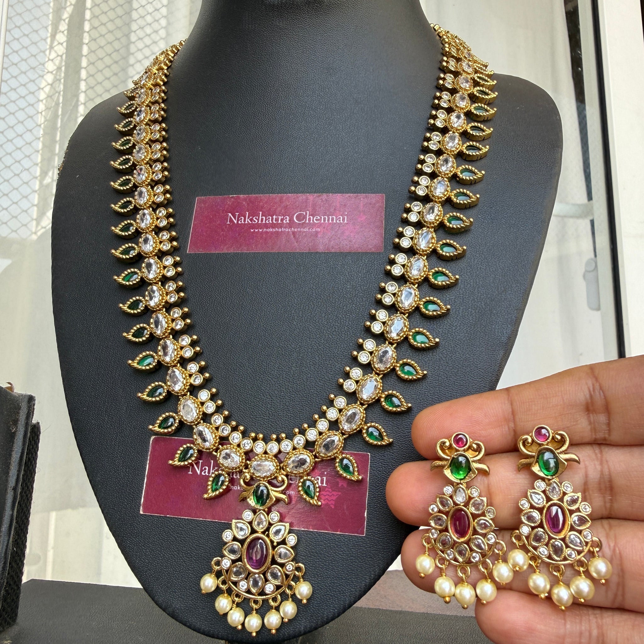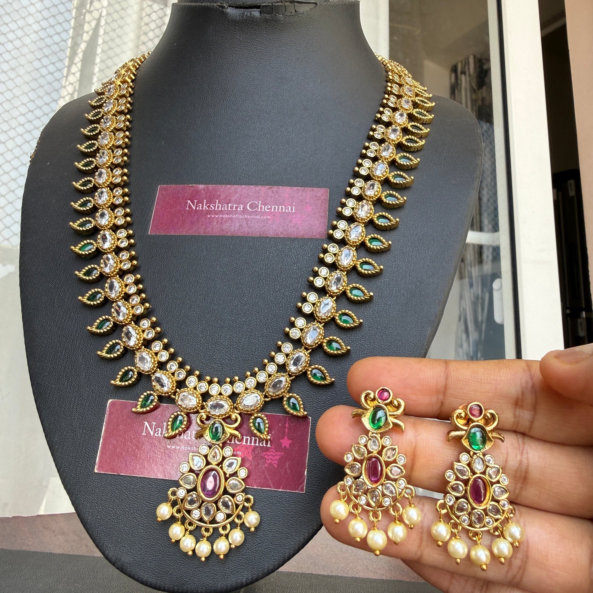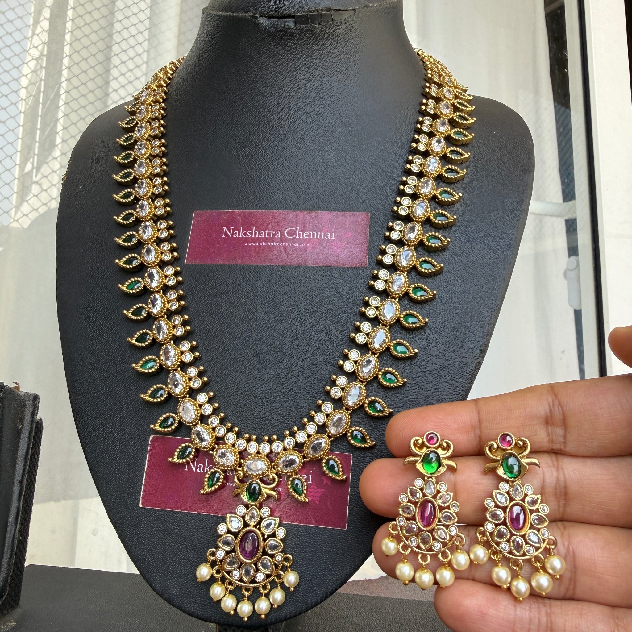 Long Set -Flexible an light weight Neckpiece comes with back rope by default an matching extremely light weight earrings