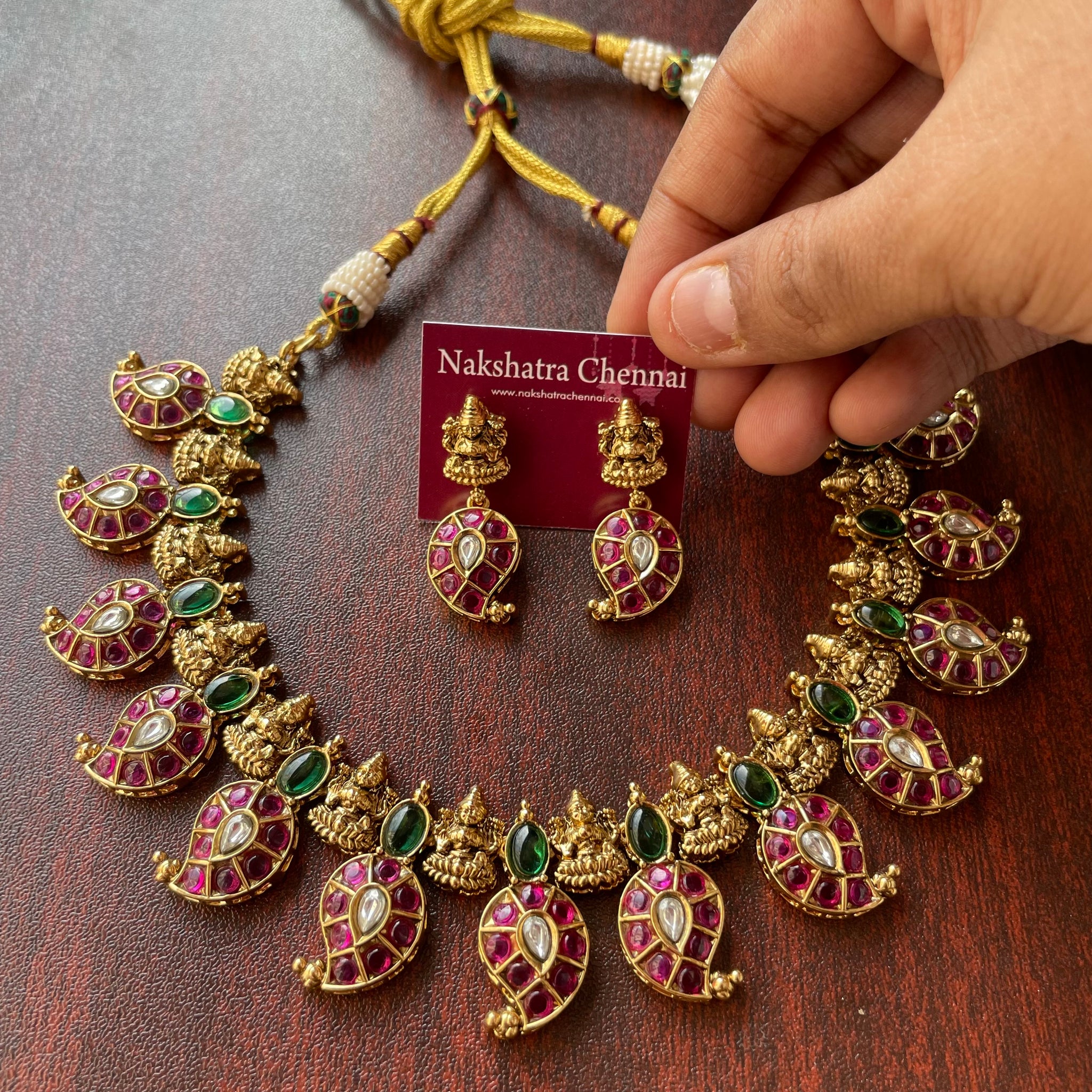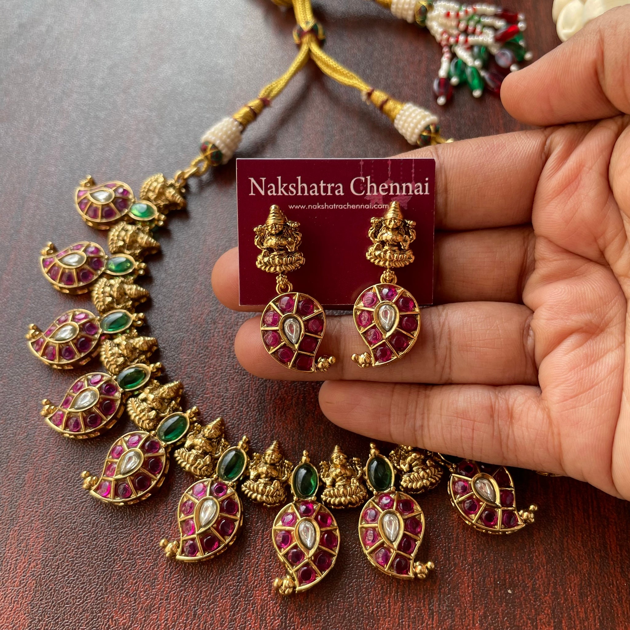 neckpiece comes with length adjustable thread and matching extremely light weight earrings